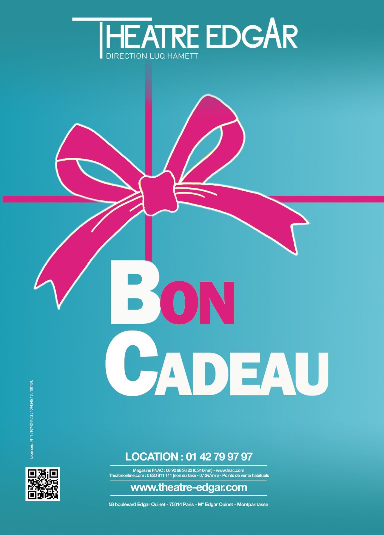 Offrez 1, 2 ou 3 places de théâtre en carré or pour les spectacles du Théâtre Edgar valable sur tous les spectacles à l’affiche pendant 1 an à partir de la date d’achat.